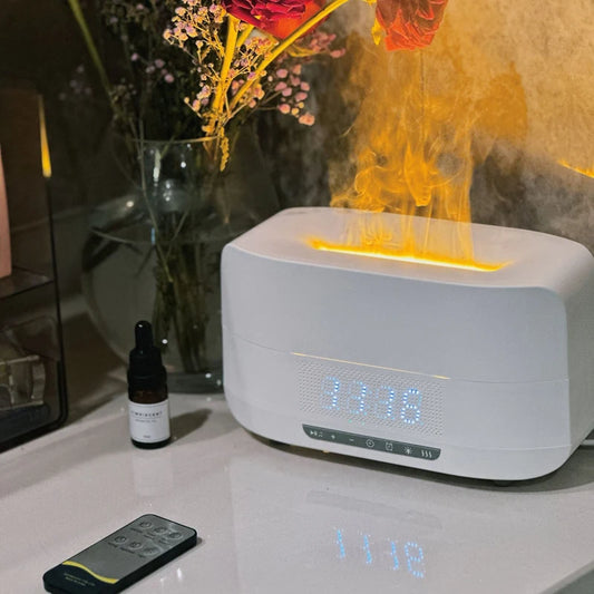 3-in-1 Flame Humidifier with Bluetooth Speaker & Alarm Clock - White