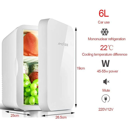 Mini Fridge With Cooler And Warmer AC/DC 6 Liter Portable Compact Refrigerator, Super Quiet In-Vehicle Freezer For Cars, Home, Dormitories, Offices