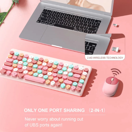 Wireless Mini Keyboard and Mouse Combo - Retro Colorful Round Key Caps, 2.4GHz, 86 Keys (Pink) for PC, Laptop, Desktop, and Mac